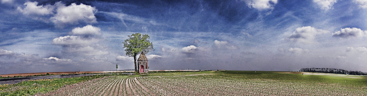 en passant vers la somme, je passe devant cette petite chapelle perdue seule sur une petite route. la photo ne rend pas encore honneur à l’impression de solitude de ce couple improbable oublié en pleine nature.